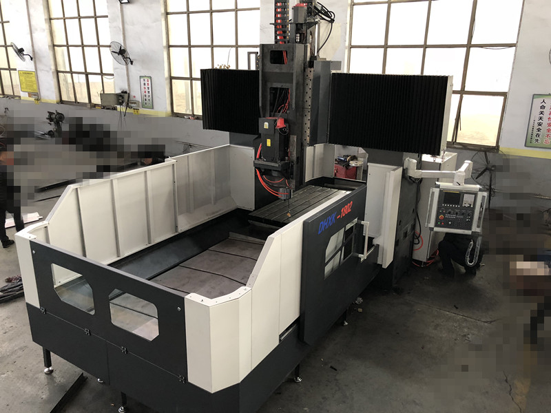 2018年(nian)數控龍(long)門銑床(chuáng)DHXK1802。機床有(you)X軸 Y軸 Z軸(zhou),三個基(jī)礎直線(xiàn)坐标軸(zhou),各坐标(biāo)軸均可(kě)以🔴數控(kòng)化❓控制(zhì)自動定(ding)位。零件(jiàn)一次裝(zhuang)夾後,可(ke)自動完(wán)成銑、鑽(zuan)。鉸、镗等(deng)多工序(xu)加工,還(hai)可以根(gen)據用戶(hù)需求增(zēng)加數控(kong)轉台、實(shi)現四軸(zhou)加工。也(ye)可以根(gēn)據客戶(hù)需求配(pei)備合适(shì)的附件(jian)頭(直角(jiao)銑頭、銑(xi)頭等多(duo)種☀️特殊(shu)形狀的(de)✔️附件銑(xi)頭)實現(xiàn)多面、複(fu)雜型的(de)加工。
