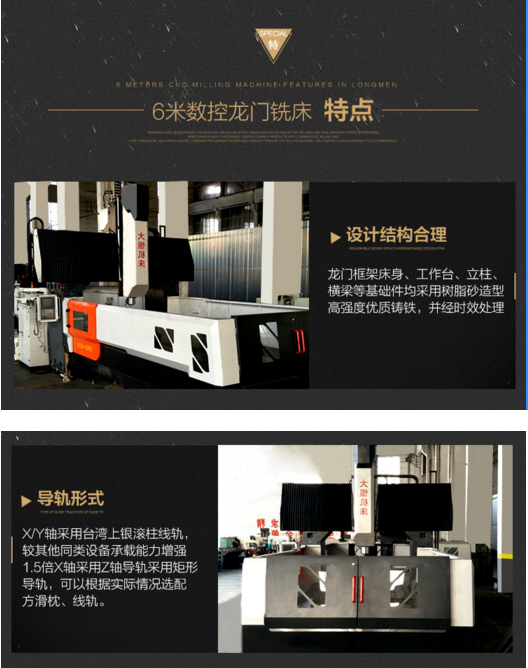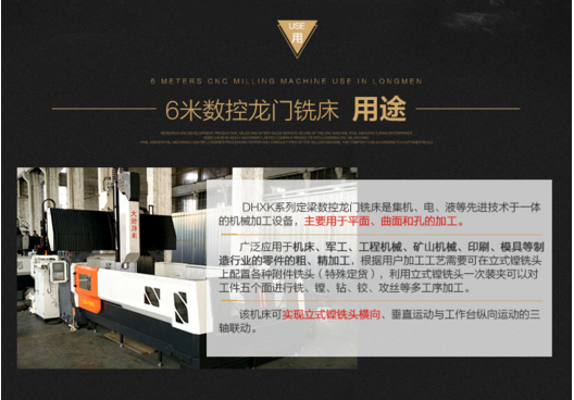 | 加工用(yòng)途 | 銑削,平面,斜(xie)面,曲面,溝槽,台(tái)階面,T形槽,鑽孔(kong),镗孔 | 工作台尺(chǐ)寸(長×寬) | 6000*2800mm |